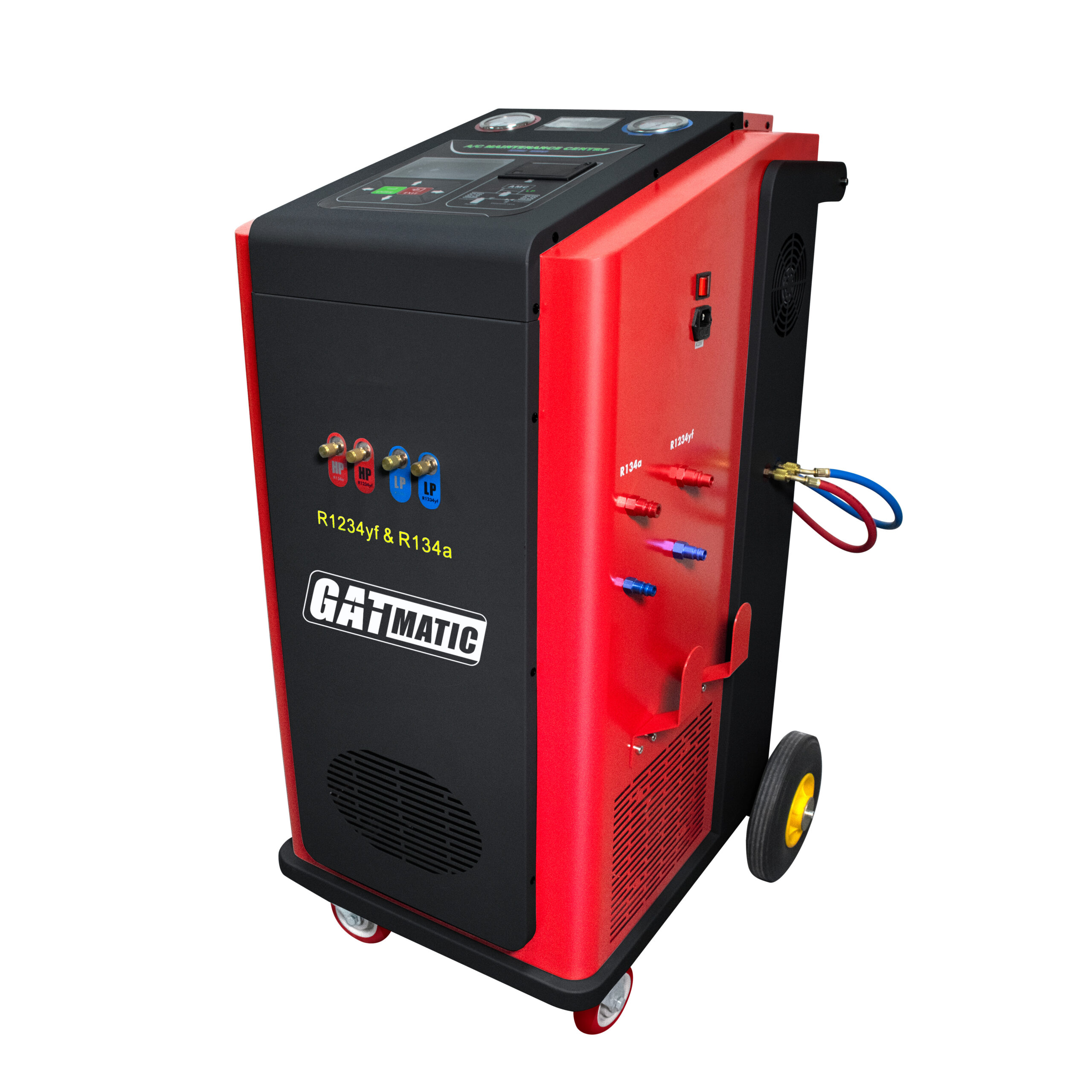GATmatic GM-830A dual system AC service machine with programmable functions for dual refrigerant types: R134A and R1234YF. This refrigerant recovery machine has been integrated with a charging amount database, LCD display, USB port, printer, and more. Controlled entirely by solenoid valves, with self-diagnosis and protection technology, this AC recovery machine functions stably and conveniently. As one of the best car AC recovery machine, GM-830A fully meet the SAE’s requirement for recovering, recycling, and recharging vehicle A/C systems, using the new R1234YF refrigerant.